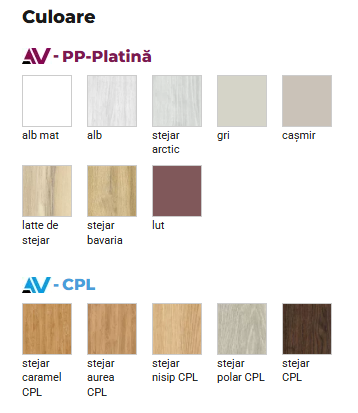 | Termina: | Aripă acoperită: laminat CPL, PP Platinium |