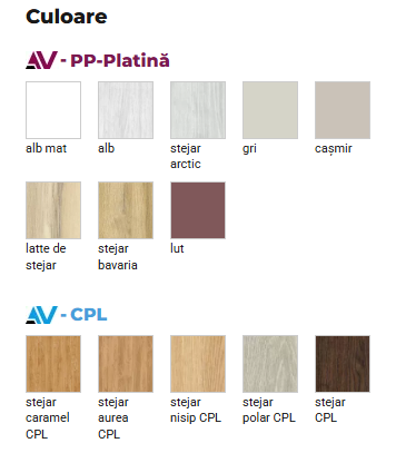 | Termina: | Aripă acoperită: laminat CPL, PP Platinium |